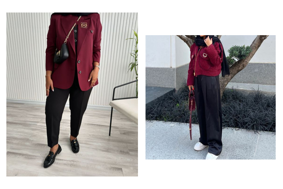 ايده استايل پاييزي با رنگ آلبالویی ترند 1403 + عکس