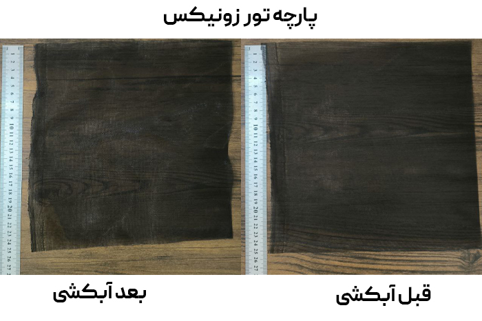 پارچه تور زونیکس بعد از تست آبرفت هیچ آبرفتی در طول و عرض نداشته است.
