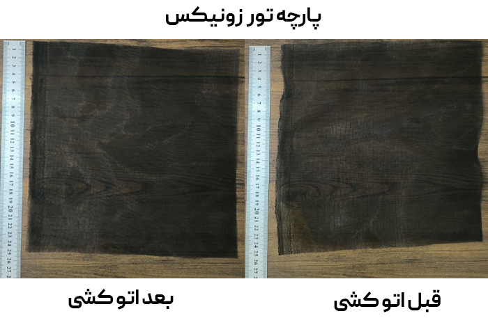 پارچه تور زونیکس بر اثر اتو کشی نه در جهت عرض و نه در جهت طول دچار تغییر نمی شود. این پارچه اتو رفت ندارد.